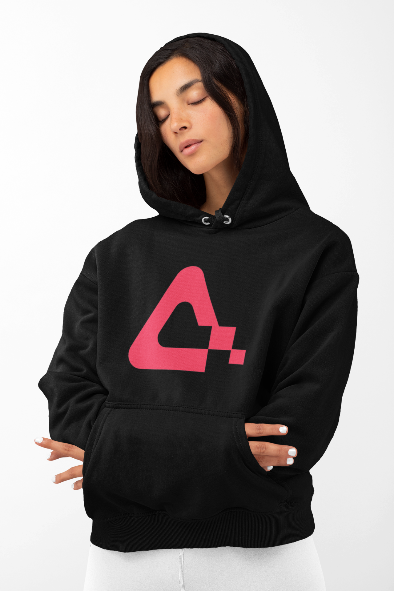 Slim fitting pullover hoodie with front kangaroo pocket and drawstring hood.
